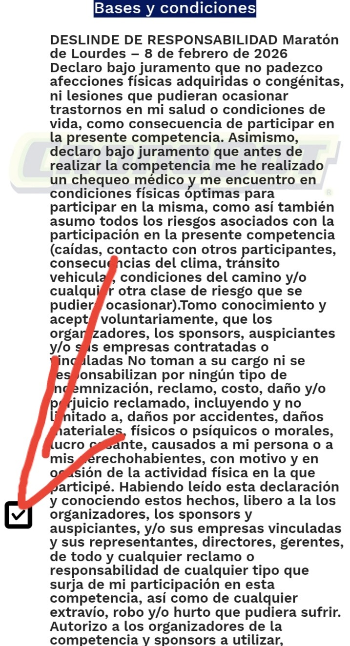 Cada participante es responsable de su estado de salud y de conocer su aptitud física para poder correr. La organización no se responsabiliza por lesiones o problemas de salud antes, durante o después del evento.